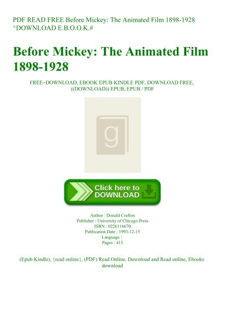 Pdf Read Free Before Mickey The Animated Film 1898 1928